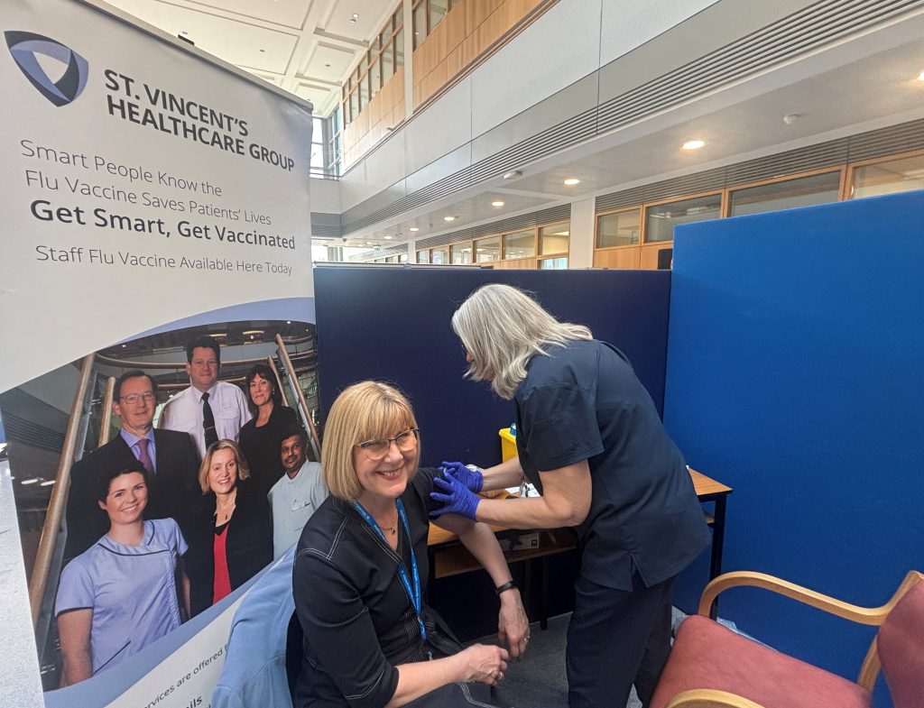 The campaign is being led by SVUH CEO Pauline McGrath, who received her flu vaccine this morning alongside staff from across the hospital. Pauline, who recently returned to Ireland after several years working in New Zealand, said she believes in leading by example.