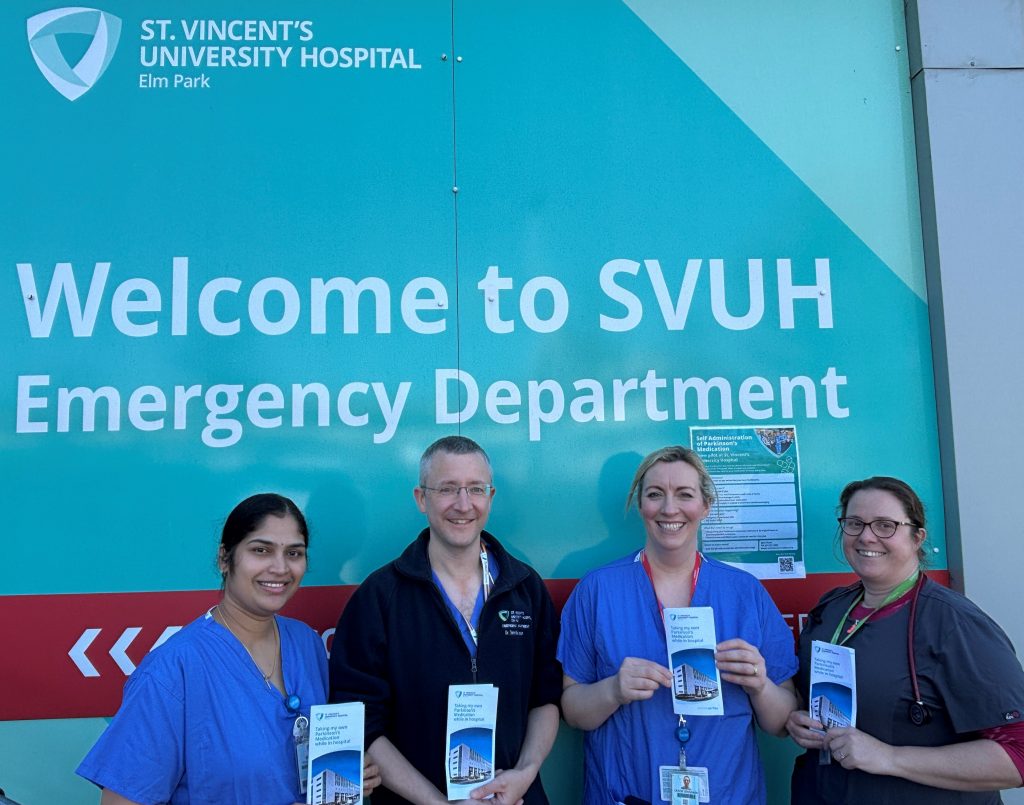 Clinical colleagues at St. Vincent’s University Hospital marking the launch of the Self-Administration of Parkinson’s Medication pilot in the Emergency Department. The initiative supports eligible patients to receive certain time-critical Parkinson’s medicines on time while in hospital.